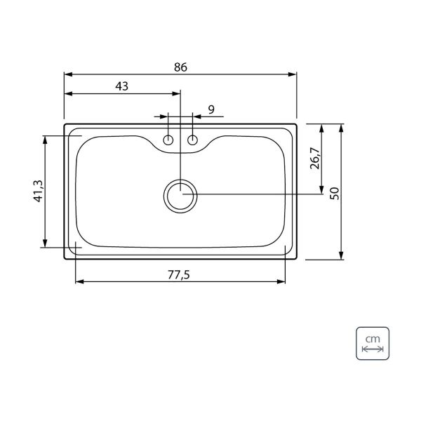 BACHA SOBREPONER RECT.TRAMONTINA MORGANA SATINADO C/SOPAPA 4.5' 50X86X21.5CM 93801/102
